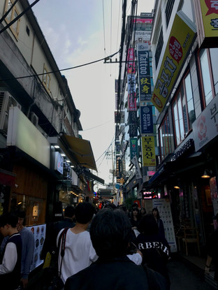 I knew it was going to be a great day when I stepped off the subway and the first thing I saw was a huge ad for one of the BTS members for their birthday haha. I tried to get a clear picture of it but the station was so busy that there was always someone walking by. The subway to get to Hongik University was probably the busiest one I had been on so far. It was super crowded and people were squished together. Fortunately, it was only a short ride for me.