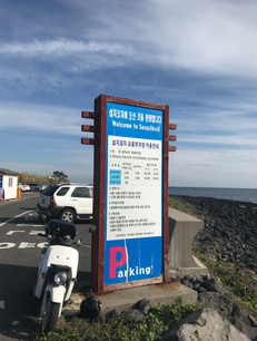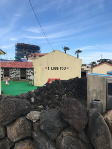 The bus ride didn't take long, but my map said it would take another 50 minutes to walk to the actual location. Seopjikoji is on the edge of the east side of the island and has a cliff with a little lighthouse surrounded by beaches and hotels. I walked from the bus stop to the lighthouse and it took at least an hour. I tried to take back roads so I could look at plants and cool houses rather than big buildings and, as usual, ended up taking the wrong path to get to the lighthouse so it took much longer than it was supposed to.