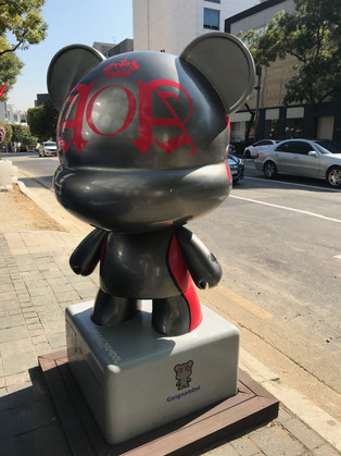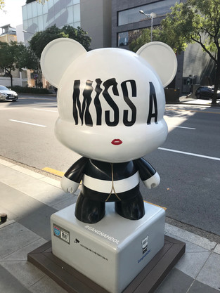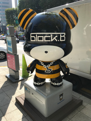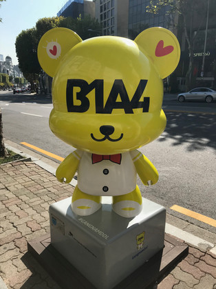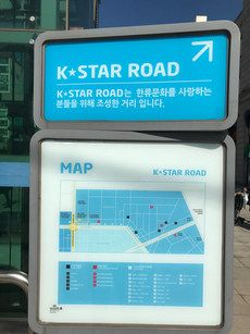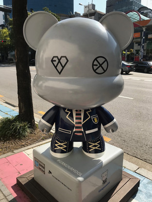 K-star road is basically a road that has these huge bear doll things along the side of it whose designs represent different k-pop groups. Fans go there to find the doll for their favourite group and take pictures with it. People can also buy small versions of the dolls at a store near the start of the road (they were all sold out of the BTS one unfortunately). There is a big Gangnam doll at the start of the road along with signs showing where you can find each doll as well as some k-pop entertainment companies that are nearby. A lot of the companies had moved since the sign had been created though so they should probably update that.