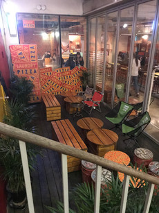 The walk there was about half an hour and I passed by some cool areas on the way. It's in the basement of a building that has several restaurants. The other restaurants looked cool but I wanted to go to the pizza one. Maybe a trip for next time? Everything looked exactly like the photo shoot set (except the photo shoot had better lighting haha). I got the restaurant special pizza and a sprite and sat near one of the washing machine tables.