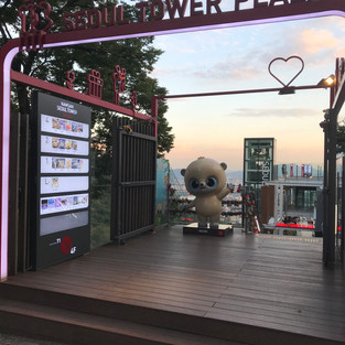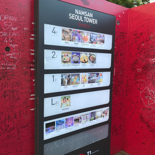 The best way to get back to my place was to take the bus that gave me so many problems the first day I arrived. However, I didn't miss the bus at all this time and I even got the right stop on my first try! After I put all my groceries away I began the trek to Namsan Tower (also called North Seoul Tower). It is a representative landmark of Seoul and also one of the tallest towers in the East. The tower is on a mountain and people can bus, walk, or take a cable car up to the tower to place locks around the railings with different messages.