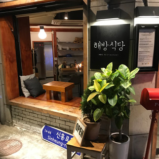Since my hostel is fairly close to the mountain I chose to walk. KakaoMap said it would take approximately 30 minutes, but I stopped to take lots of pictures along the way so it took a little longer. The walk to the base of the mountain took me through back streets of Yongsan-gu where I found beautiful art and really cool little restaurants. (I took a picture of a pretty door for you, Susan)