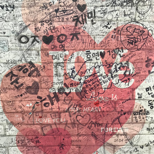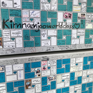 I spent about an hour and a half wandering around and then went into the plaza again to get some food. There were several restaurants, an arcade, lots of photo booths, and even more places where people had hung pictures and written messages. I ended up getting popcorn (that I had been able to smell from outside and craving since I arrived) and some tea with aloe in it. There were so many places where people had written things about BTS so I had fun finding and reading those.
