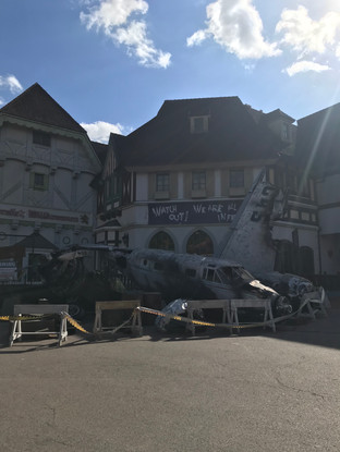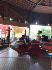 Since Halloween is coming up the park had created a horror/zombie area. We wandered around and looked at the decorations but none of the stuff opened until 7 pm so we left. By this point we had one of the fast passes so we used it to go on a spinning car ride. After the ride we took a ski lift looking thing down to the lower part of the park to try and find somewhere to eat.