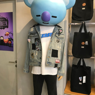 After relaxing for most of the morning I finally convinced myself to move and head to Itaewon. Itaewon Street is a major attraction for tourists and it is full of shops, clubs, and restaurants. The main reason I wanted to go here was to visit the Line Friends store which carries BT21 merchandise. BT21 is a line of characters created by BTS. There is a character for each member of BTS (7) plus one that represents the fans. The Line Friends store was right by the Itaewon subway stop and it was so fun to explore! It has two floors dedicated to merchandise and then a top floor called the Line Friends cafe where people can get drinks and treats and see the original drawings that each BTS member made when designing their character.