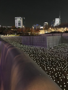 I walked back to the design plaza after eating to try and find the famous LED flower display. It was originally set up as a temporary exhibit a few years ago, but it was so popular that it is now permanent. The lights turn on at 7 pm every night and there are thousands of them! It took me forever to find it though. At first I thought it might be inside the design building so I checked in there. There was a cool SM merchandise shop and lots of other booths with unique looking items, but no glowing flowers.