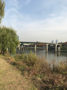 After I finished my tea I walked down to the Han River. When I walked to Maebongsan park from Seoul forest a while ago I passed a park that looked super pretty. Unfortunately, I was walking on a bridge above it and wanted to catch the sunset that day so I didn’t have time to go look at it. The park was about an hour away from the place along the river that I walked down to and I wanted to find it today. I was able to walk on the paths along the river all the way there! I passed lots of basketball courts and small green areas. There was also a decent number of people out biking and enjoying the weather.