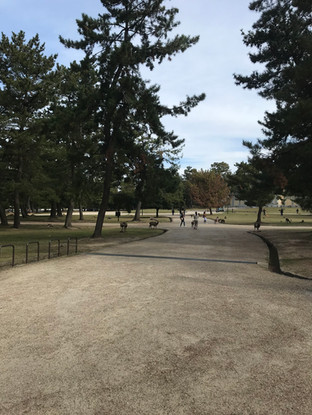 After wandering around the temple (and face-timing my parents to show them all the cool buildings) I walked a short distance to Nara Deer Park. The deer park is a huge grassy area where deer can wander around freely. There are no gates so they can even cross the roads and wander around to other areas. I'm not sure how they don't wander further and cause problems at shops or along major streets. I was too scared to actually touch the deer but a few did wander close to me.