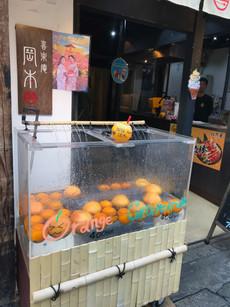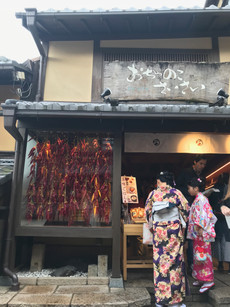 This market was very similar to ones I have seen in Korea. There were tons of stalls on either side of the street selling a wide variety of items. No cars are allowed to drive on the street, but people and scooters can try to squish in. It was fairly busy, but not too busy that it prevented me from taking my time to look around. I tried roasted chestnut (which didn't have much taste) and a colourful treat that looked like the cake thing I had had at the garden yesterday but ended up just being a gummy. I wish I could bring some of the rice cake candies back for my family to try but they go bad after a few days. I didn't spend too much time here because I wanted to head back to Gion district before 5:45 to see what it's like at night.