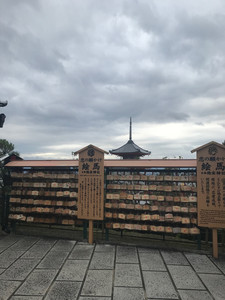 There was a shrine on the other side of the temple that had cool good luck charms for different situations. For example, there were charms for traffic safety, luck with money, and finding love. There were also some areas where people could hang wooden plaques but I'm not sure if they were for writing wishes or something else.