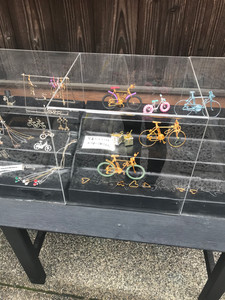 I walked back up Ninen-zaka street to get to the next alley and took more pictures with the pagoda. I also noticed this cute bicycle place that hand-made small bicycles out of different coloured wires.