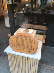 The Koshindo shrine is very close to Yasaka Pagoda (also known as Hokaiji Temple). The pagoda overlooks Gion area, which includes Sannen-zaka and Ninen-zaka street. Both Sannen-zaka and Ninen-zaka are streets lined with beautifully restored, traditional shops. The streets are full of tourists dressed in kimonos as well as lots of shops selling green tea and matcha foods. There are also carts that people can rent to travel around the streets. There is someone dressed up who will pull the cart for them and I passed several while I was walking around the area.