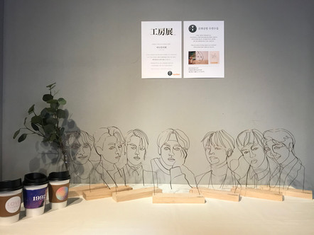 The cafe had a few cute decorations including a collection of wire art designs of the members.