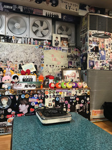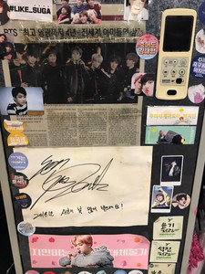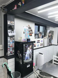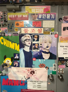 Yoojung Sikdang is a popular restaurant for BTS fans to go to. When BTS were younger they used to train in the basement of the restaurant and they often ate there. Now it has become one of the go-to places for fans that come to. It has basically turned into a BTS shrine. The walls are covered in posters and items that fans have brought to and then left at the cafe. Every inch of the wall is covered and it's amazing! I don't remember what the food we ordered was called but it was unbelievably yummy. The meat was so good and the soybean paste soup was by far the best I have had so far. It was really neat to see the items fans had brought to the cafe and to read the messages they had written.