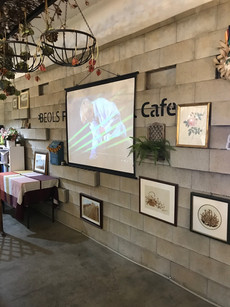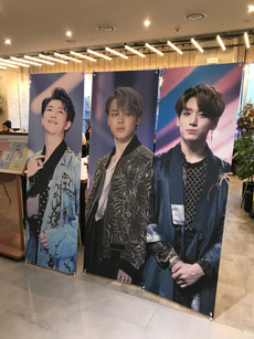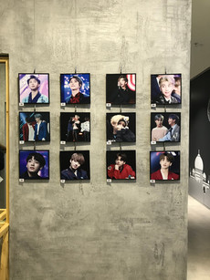 Near the end of the exhibit there was a table with merchandise that people could buy. There were photo books, photo cards, pins, and even more items. Ella and I both stopped to look at the stuff and say hello to the fansites. They were super nice and I started looking through one of the photo card stacks. I was casually flipping through it when a really awesome photo of Namjoon came up and I accidentally said 'hot damn' super loudly. The three girls running the booth burst out laughing and started to nod their heads and give me a thumbs up. I went bright red and I'm pretty sure Ella was ready to disown me. Each time I flipped to a Namjoon picture after that incident the three girls would go 'hot damn?' and I would get even more red haha. I almost bought the huge photo book, but Ella was fortunately there to remind me that I really did not need it. I did buy some fun stickers that they had designed though. We waved bye to the girls and went out to the cafe to grab a drink. There were special cup sleeves for the event and Ella got some stickers because she ordered one of the special drinks (she was super nice and gave me the stickers to take home).
