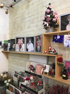 Rather than going straight home I decided to stop by a birthday cafe that was near the airport. The birthday cafes that are out of the main areas of Seoul typically have awesome photo cards and decorations. This one did not disappoint. There were so many photos and decorations throughout the cafe and the photo card was a cool sparkly one. They even had a projector in a back area of the cafe that was playing clips of Taehyung from concerts.