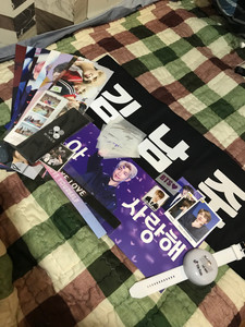 After I got all my freebies from the fan sites I walked over to the people selling merchandise. I really wanted one of the slogans that I had seen fans holding at award shows in Korea. Slogans are a banner with the name of your favourite member on one side in reflective material and a picture of them or something else on the other side. I tried to look at all the 'stalls' before buying anything, but that method didn't work for long. I found one 'stall' where people were selling handmade sparkly stickers of each BTS member's signature. I bought an entire set (one for each member) even though I have absolutely no use for them haha. I did find one place selling the nice cloth slogans I wanted so I bought one of those as well. I was just about to leave when I came across a place selling smaller slogans. I think they were 3000 won for 2 or something around that price. I decided it would be fun to buy one for each member and one for the whole group. They will look cool on my wall at home or I can give them away to other fans in Canada.